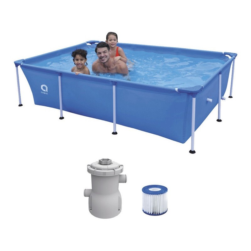 Zdobądź nowy Basen odpinany z systemem filtracji 1136 L. od Jilong już teraz! Zdobądź ten wspaniały odłączany basen, aby cieszyć się latem w najbardziej zabawny i relaksujący sposób. Ten nowy model ma wiele zalet, na przykład dużą pojemność wodną wynoszącą około 2600 litrów. Oczyszczacz z filtrem kartridżowym o przepływie 1,136 l/h. Napięcie 220-240V. Inną niesamowitą zaletą, która sprawia, że ta opcja jest najlepsza dla Twojego domu jest jej łatwa instalacja w ciągu zaledwie 30 minut i bez konieczności użycia narzędzi do montażu. Dzięki swoim rozmiarom i wymiarom basen ten jest idealną opcją, aby mieć go w domu tego lata i cieszyć się nim z rodziną lub przyjaciółmi. Zalecany wiek: + 6 lat. Przybliżone wymiary: wysokość 66 cm, długość 258 cm, szerokość 179 cm. W zestawie: basen stalowy Super Rectangular Pool wyjmowany w kolorze niebieskim oraz wkład typu S do oczyszczacza w komplecie. Nr ref. 29P481.