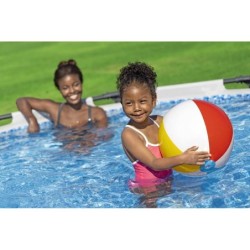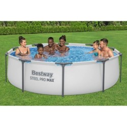 BASEN OKRĄGŁY ODPINANY BESTWAY 56408 305 x 76 cm Fantastyczny na taras lub ogród. Wielki opór. Funkcje: - Pasuje do 4678 litrów (około) - Rozmiar 305 x 76 cm (średnica x wysokość) - Stalowe pręty antykorozyjne - Zawór szybkiego ewakuacji - Prosta instalacja Za pomocą: - Pompa z filtrem do 1249 litrów / godzinę Ref 58381 (wykorzystuje filtry kasetowe Ref 58093, w zestawie) - Line Tritech, 3-warstwowy poliester z odpornymi chemicznie arkuszami PVC i odpornym na promieniowanie UV - łatki naprawcze