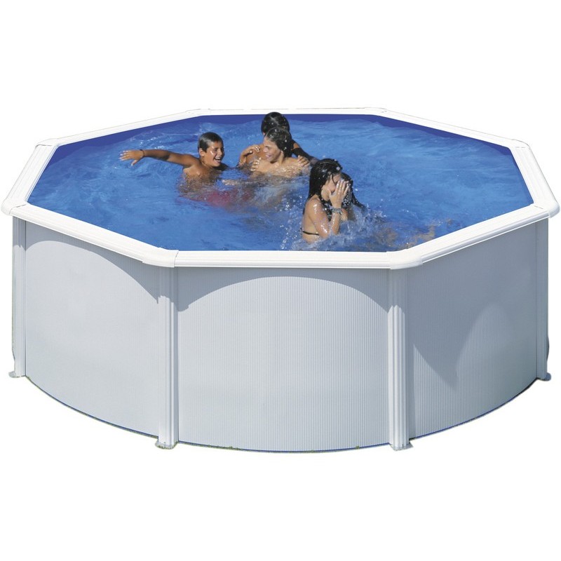 BASEN GRE FIDJI. Świetna jakość i doświadczenie. Obsługa posprzedażna i gwarancja. Funkcje: - Rozmiar 240 x 120 cm (średnica x wysokość) - Precyzyjna przestrzeń 300 x 300 cm - Pasuje do 4750 litrów (około) - Ściana ze stali ocynkowanej - Wykładzina PVC niebieska 30/100 Zakładka, poddana obróbce przeciw ultrafioletowi - Arkusz laminowany, fosforanowany, zagruntowany i lakierowany - Pionowy profil stalowy - Ochraniacze interakcji - Sztancowanie skimmera i zaworu zwrotnego wody Z: - Drabina bezpieczeństwa - Płuczka piaskowca krzemieniowego 3 m3 / godzinę - Zawiera piasek