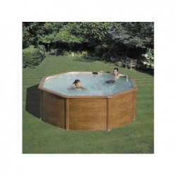 OKRĄGŁY BASEN ŚCIANA STALOWA IMITACJA DREWNA PACIFIC SERIA KIT240W. Fantastyczny do ogrodu lub na taras. Funkcje: - Rozmiar 120 cm (wysokość) - Pasuje do 4750 litrów (około) - Precyzyjne miejsce do montażu: 300 x 300 cm (bok x bok) - Poszycie walcowane na zimno (ocynkowane, fosforanowane, zagruntowane i lakierowane) - Sztancowanie dla zaworu zwrotnego wody i odpieniacza Z: - Wykładzina PVC w kolorze piasku 30/100 OV system (zakładka), zabezpieczona przed promieniowaniem ultrafioletowym - Płuczka piaskowca krzemiennego przez 3 m3 / godzinę - Drabina bezpieczeństwa (2 x 3 kroki). Te z jednej strony można usunąć, aby uniemożliwić dostęp dzieciom Gwarancja i serwis posprzedażny według producenta