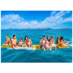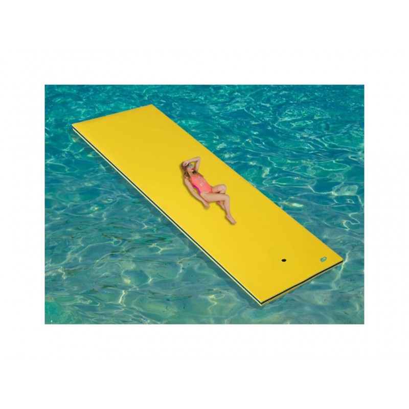 Fantastyczny Pływający dywan typu Roll-up, aby cieszyć się dniem na plaży nad morzem. Ten fantastyczny dywan jest idealnym uzupełnieniem, aby cieszyć się na wodzie z rodziną i przyjaciółmi, jest niebieski i żółty, z potrójną warstwą polietylenu i wzmocniony poliestrem, co pozwala mu utrzymać na wodzie ciężar do 600 kilogramów. Można Po zwinięciu można go łatwo transportować, a waży tylko około 12 kg. Jego wymiary to 550 cm długości na 180 cm szerokości i 3,3 cm grubości, a przygotowany jest do przyjęcia 8 do 10 osób. Ma on miejsce do leżenia, siedzenia, zabawy i wiele więcej. Posiada również miejsce do zakotwiczenia, dzięki czemu można ją przymocować w bezpiecznym miejscu, aby zapobiec jej przemieszczaniu się wraz z urządzeniem. Lina nie jest dołączona do zestawu, ale można ją dokupić osobno. Bezpieczny sposób na pływanie w morzu w towarzystwie rodziny lub przyjaciół, ciesząc się bryzą, kąpielą i komfortem z zachowaniem wszelkich wymaganych zasad bezpieczeństwa. komfort z zachowaniem wszelkich wymaganych środków bezpieczeństwa. Zalecany wiek: + 6 lat.